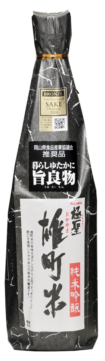 純米酒として冷やでもぬる燗でも飲んでいただける秋上がりして飲み飽きしないお酒です。岡山特産の酒造好適米「雄町米」を100%使用し、芳醇でフルーティーな香りの中に舌に伝わる滑らかな味わいを実現しました。